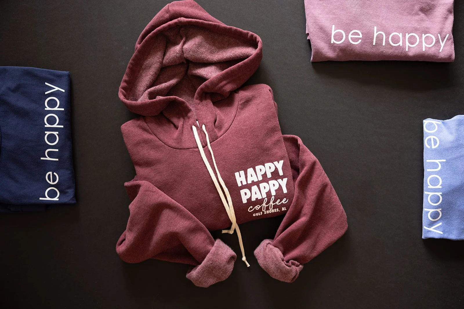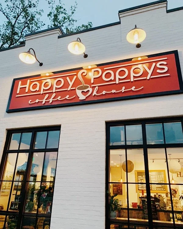 Signage and merchandise for Happy Pappys Coffeehouse in Gulf Shores, AL,